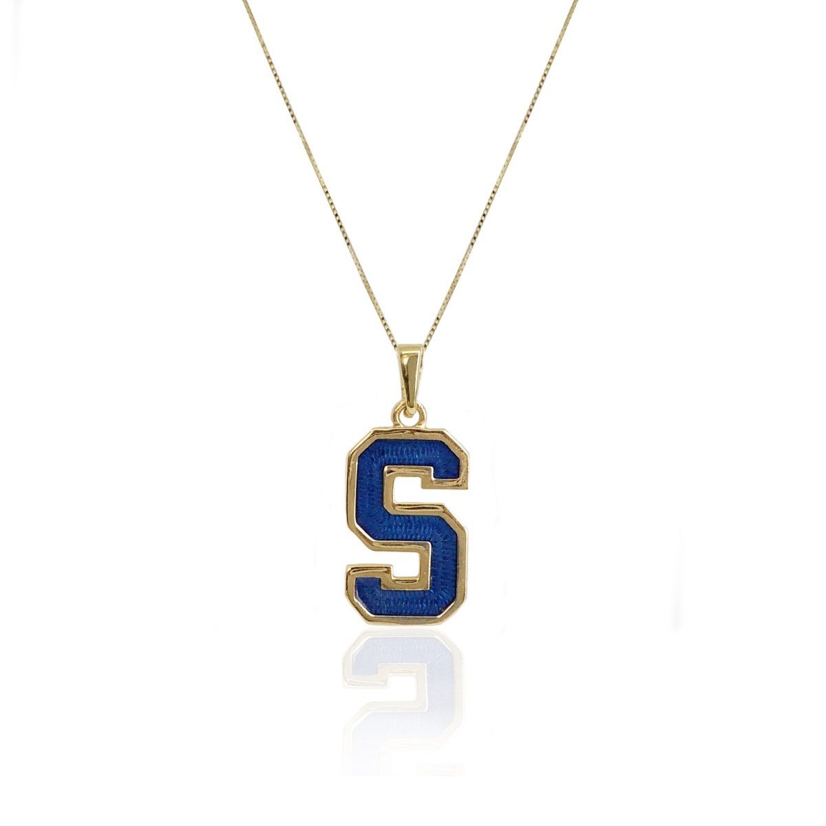 | תיאור שרשרת ותליון אות זהב עם אמייל 14K. תליון בצורת S בשילוב אמייל כחול, עדין ומיוחד. |
