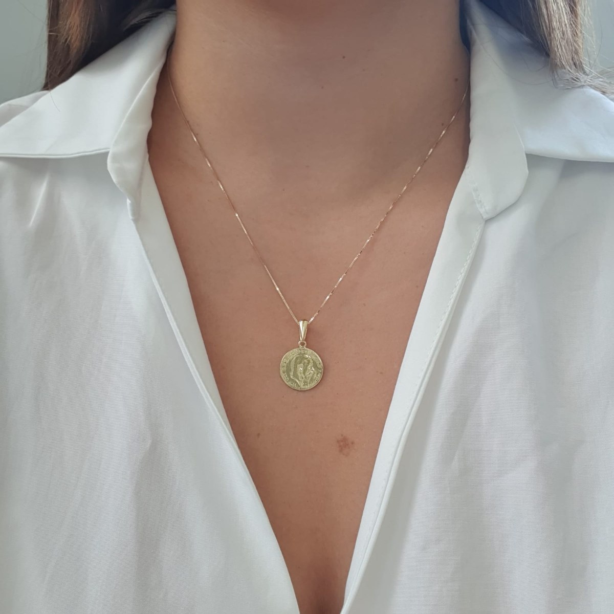שרשרת ותליון זהב בסגנון מטבע מאוד מיוחד כשעליו תמונה של ג'ורג' (רפלקיה). תליון מהמם עם הסגנון הכי עכשווי , מטבע .